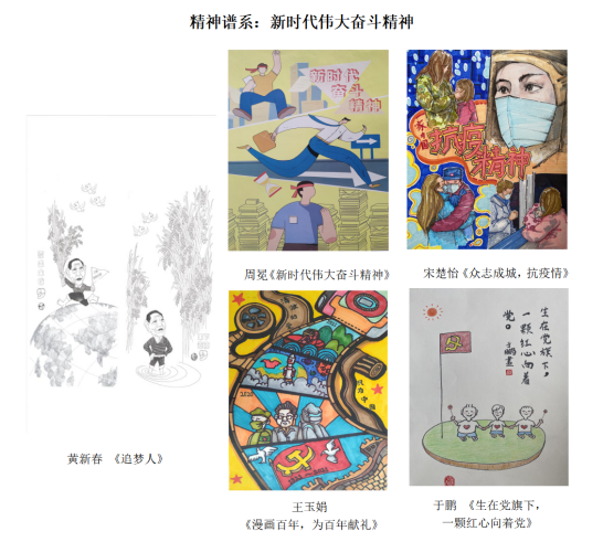 此次展覽是藝術(shù)學(xué)院深入開展“百年黨史”學(xué)、研、創(chuàng)活動,充分挖掘紅色資源,不斷創(chuàng)新學(xué)習(xí)形式,引導(dǎo)師生將所學(xué)所思、所獲所得,用手中的畫筆和心中的真情匯聚成一幅幅鮮活生動的漫畫,歌頌中國共產(chǎn)黨百年奮斗歷程和輝煌成就,激勵全體黨員師生自覺肩負(fù)時代重任和使命擔(dān)當(dāng),大力發(fā)揚紅色傳統(tǒng),傳承紅色基因,匯聚學(xué)校新時代教育事業(yè)高質(zhì)量發(fā)展的磅礴力量。展覽圍繞“革命精神、艱苦創(chuàng)業(yè)精神、改革開放精神、新時代偉大奮斗精神”四個主題,共征集到師生黨員創(chuàng)作的漫畫作品137幅,集中展覽112幅。