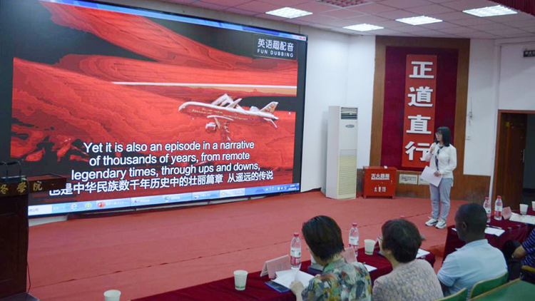 為慶祝中國(guó)共產(chǎn)黨成立100周年,傳承紅色基因,弘揚(yáng)愛國(guó)主義優(yōu)秀傳統(tǒng),增強(qiáng)師生的愛國(guó)情懷和民族自豪感,6月25日,人文學(xué)院舉辦“慶祝建黨百年 傳承紅色基因”用英語(yǔ)講好中國(guó)故事英語(yǔ)配音大賽。國(guó)際交流處處長(zhǎng)張建芳,人文學(xué)院院長(zhǎng)張文諾、黨總支副書記杜明生、副院長(zhǎng)任桂婷,健康學(xué)院黨總支書記魯綿茸,人文學(xué)院英語(yǔ)系主任廉潔及外籍教師Hillary老師擔(dān)任比賽評(píng)委。學(xué)院英語(yǔ)系全體學(xué)生觀看了比賽。