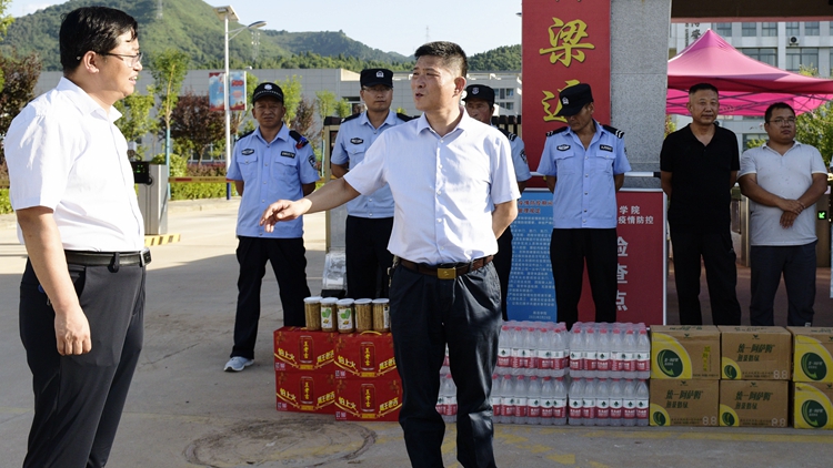 在黨委辦公室·院長(zhǎng)辦公室、校工會(huì)、保衛(wèi)處、后勤保障處和丹江校區(qū)管理處等相關(guān)部門負(fù)責(zé)人陪同下,校長(zhǎng)范新會(huì)一行先后前往北新街校區(qū)和丹江校區(qū)各處門衛(wèi)室、招生辦、基建處、后勤集團(tuán)、校醫(yī)院等一線崗位,看望慰問(wèn)正在辛勤工作的值班人員。每到一處,范新會(huì)都與值班人員親切握手,仔細(xì)詢問(wèn)生活和工作情況,代表學(xué)校黨政對(duì)暑假期間依然奉獻(xiàn)在一線的工作人員表示衷心感謝,并親手送上清涼套餐、降溫飲料等防暑降溫慰問(wèn)品。范新會(huì)要求各相關(guān)部門要毫不松懈,在做好暑期日常工作的同時(shí),持續(xù)保持疫情防控常態(tài)化;要精心組織、統(tǒng)籌安排,認(rèn)真推進(jìn)學(xué)校部署的各項(xiàng)工作任務(wù),為校園正常運(yùn)轉(zhuǎn)和安全穩(wěn)定提供良好保障。
