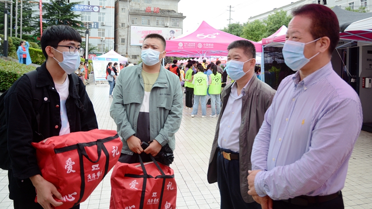秋雨潤(rùn)校園,熱情益彰顯。9月1日,我校第一批新生懷揣夢(mèng)想來(lái)校報(bào)到,開(kāi)啟一段新的人生征程。校黨委書記張志昌、校長(zhǎng)范新會(huì)、黨委副書記彭虎軍、副校長(zhǎng)劉寶盈在相關(guān)職能部門負(fù)責(zé)人的陪同下深入迎新現(xiàn)場(chǎng),檢查指導(dǎo)迎新工作,看望慰問(wèn)報(bào)到新生,并為家庭經(jīng)濟(jì)困難新生發(fā)放愛(ài)心禮包。