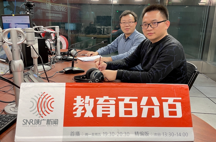 11月30日晚19:30分,我校電信學(xué)院院長袁訓(xùn)鋒、電氣系系主任張商州應(yīng)邀做客陜西人民廣播電臺陜西新聞廣播(FM101.8)《教育百分百》專題節(jié)目直播現(xiàn)場。