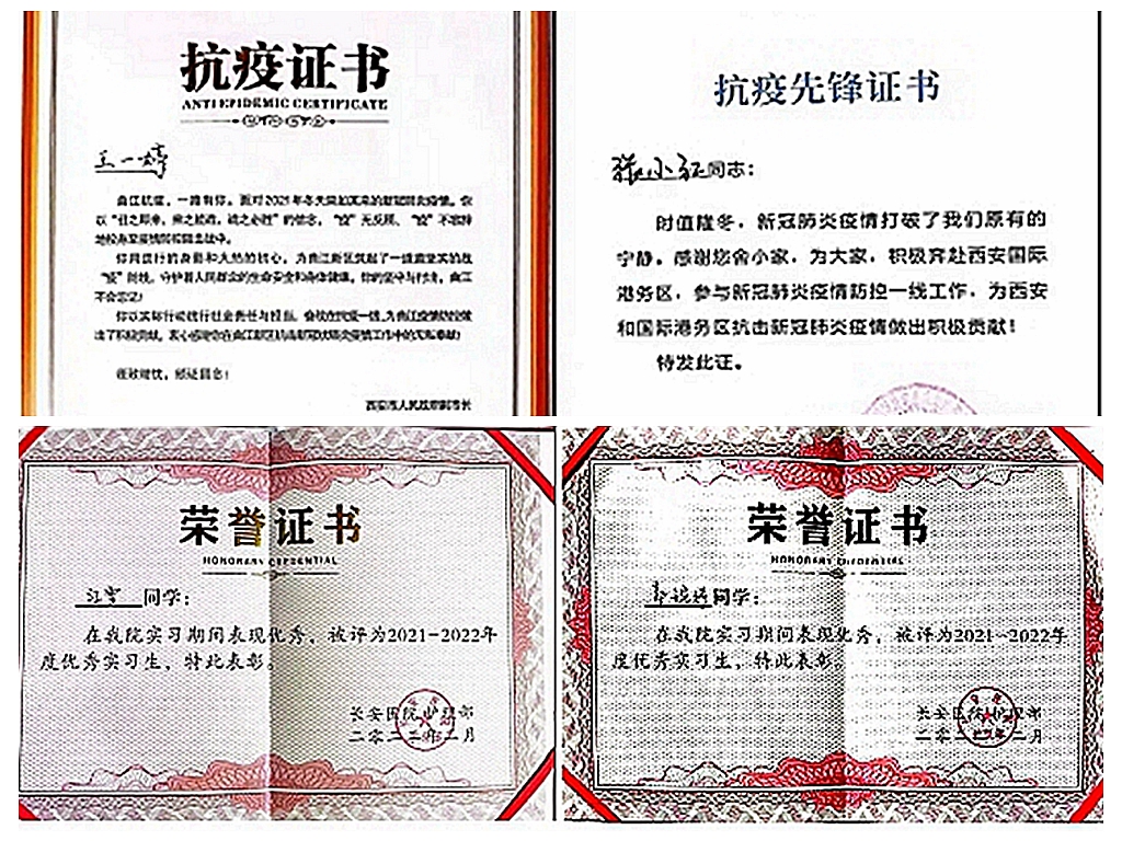 近日,西安曲江新區(qū)和國(guó)際港務(wù)區(qū)對(duì)抗擊新冠肺炎疫情工作中表現(xiàn)突出的工作人員和志愿者進(jìn)行了表彰。我校王一婷、張小紅、郭江艷、崔晉維、高靜、郭婉婷6名實(shí)習(xí)生榮獲西安曲江新區(qū)和國(guó)際港務(wù)區(qū)頒發(fā)的抗疫證書(shū)和抗疫先鋒證書(shū)。學(xué)生江雪榮獲西安國(guó)際港務(wù)區(qū)頒發(fā)的抗疫先鋒證書(shū)。張小紅、郭婉婷及江雪3名實(shí)習(xí)生被長(zhǎng)安醫(yī)院評(píng)為“優(yōu)秀實(shí)習(xí)生”。
