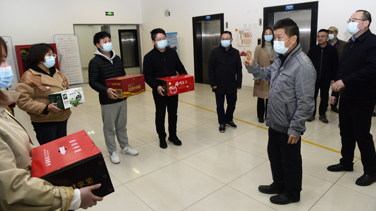 3月21日下午,校長范新會、黨委副書記彭虎軍、副校長郭瑾一行看望慰問了北新街校區(qū)疫情防控一線工作人員,并為他們送去了慰問品。黨委辦公室·校長辦公室主任劉勇、工會副主席劉霞陪同慰問。