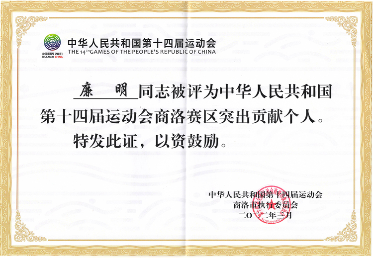 近日,第十四屆全國運(yùn)動(dòng)會(huì)商洛市執(zhí)行委員會(huì)發(fā)布了《關(guān)于第十四屆全國運(yùn)動(dòng)會(huì)商洛賽區(qū)籌辦工作情況的通報(bào)》(十四運(yùn)發(fā)〔2022〕1號(hào)),我校榮獲十四運(yùn)會(huì)商洛賽區(qū)籌辦工作“突出貢獻(xiàn)單位”榮譽(yù),數(shù)計(jì)學(xué)院黨總支書記廉明(原團(tuán)委副書記)榮獲十四運(yùn)會(huì)商洛賽區(qū)籌辦工作“突出貢獻(xiàn)個(gè)人”榮譽(yù)稱號(hào)。