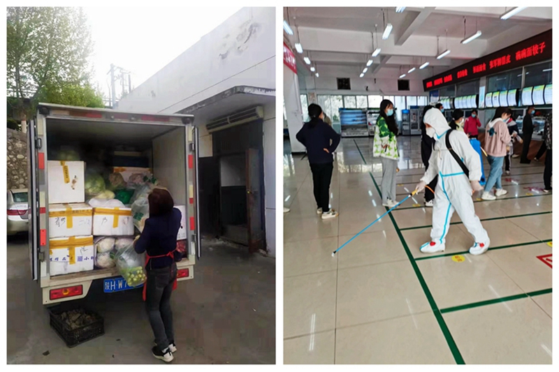 針對(duì)封控帶來的防疫物資供應(yīng)緊張、采購(gòu)壓力等難題,后勤保障處多方籌措,及時(shí)采購(gòu)口罩、測(cè)溫器、防護(hù)服、體溫計(jì)、消毒液等衛(wèi)生防疫物資,儲(chǔ)備米、面、糧、油等生活保障物資,同時(shí)建立了穩(wěn)定的供應(yīng)渠道。兩校區(qū)食堂嚴(yán)格落實(shí)衛(wèi)生消毒檢查、疫情監(jiān)測(cè)、車輛消毒監(jiān)督等工作措施,各窗口飯菜供應(yīng)齊全。飲食服務(wù)中心認(rèn)真落實(shí)學(xué)校“錯(cuò)峰就餐”“禁止堂食”等工作要求,安排專人引導(dǎo)學(xué)生有序進(jìn)出餐廳,保持“一米線”排隊(duì),實(shí)現(xiàn)全程閉環(huán)管理。
