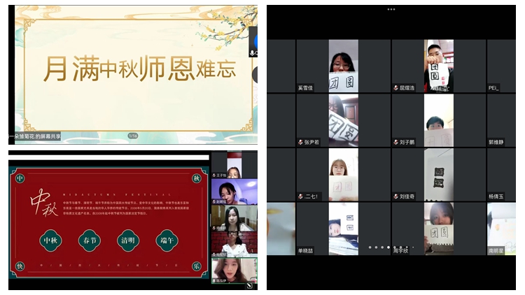 人文學院以“月滿中秋,難忘師恩”為主題舉辦線上活動。師生共讀傳統(tǒng)古詩、分享家鄉(xiāng)中秋習俗,學生們通過“云端”向老師們送來熱情的祝福,表達了自己對大學生活的憧憬。