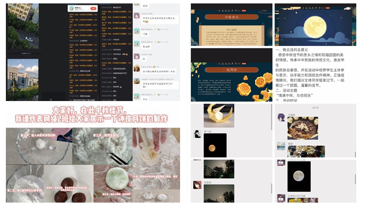 數(shù)計學院開展了線上猜燈謎、賞明月、講中秋傳統(tǒng)故事等活動。有的新生通過視頻等方式展示了自己動手制作月餅的全過程,學院教師通過VR帶領(lǐng)新生“云端逛校園”,向?qū)W生展示我校全貌。