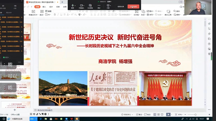 9月22日,校團(tuán)委邀請(qǐng)馬克思主義學(xué)院教授楊增強(qiáng)開(kāi)展名為《新世紀(jì)歷史決議,新時(shí)代奮進(jìn)號(hào)角--長(zhǎng)時(shí)段歷史視域下十九屆六中全會(huì)精神》的線上專(zhuān)題講座,為我校團(tuán)學(xué)干部和團(tuán)員代表解讀十九屆六中全會(huì)決議。楊增強(qiáng)教授從十九屆六中全會(huì)的主要內(nèi)容和歷史定位、十九屆六中全會(huì)的貢獻(xiàn)、十八大以來(lái)取得的偉大成就、中國(guó)共產(chǎn)黨最大的政治優(yōu)勢(shì)和特點(diǎn)等方面解讀全會(huì)決議,重點(diǎn)解讀了十九屆六中全會(huì)的貢獻(xiàn)和十八大以來(lái)取得的偉大成就,深刻總結(jié)了黨的十八大以來(lái)黨和國(guó)家事業(yè)取得的歷史性成就、發(fā)生的歷史性變革。