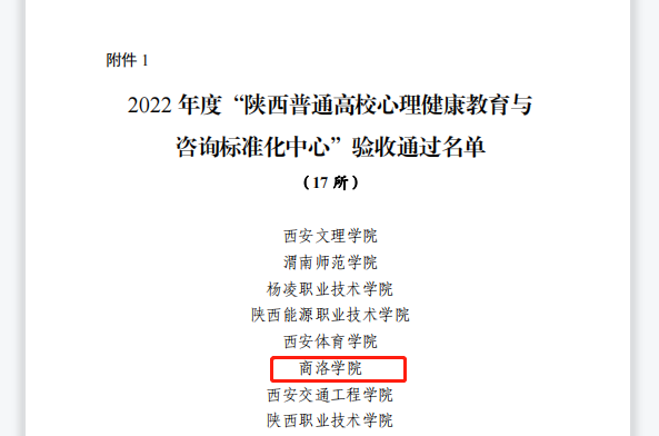 日前,中共陜西省委教育工委公布了陜西普通高校心理健康教育與咨詢(xún)標(biāo)準(zhǔn)化中心建設(shè)項(xiàng)目的驗(yàn)收結(jié)果(2022年度)。我校心理健康教育中心順利通過(guò)驗(yàn)收,獲批“陜西普通高校心理健康教育與咨詢(xún)標(biāo)準(zhǔn)化中心”。