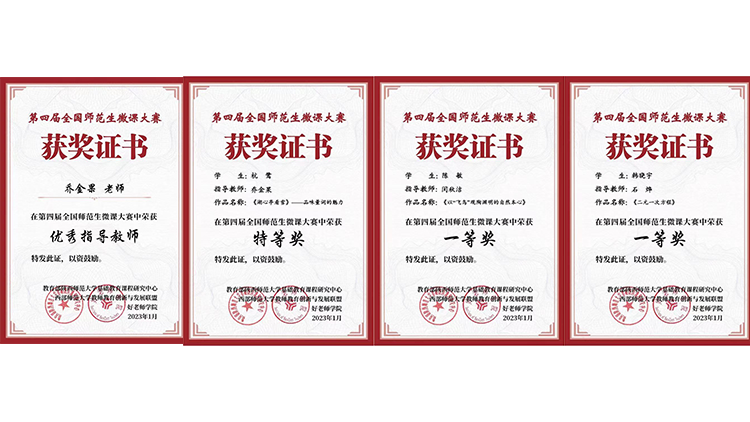 近日,第四屆全國(guó)師范生微課大賽結(jié)果公布。我校師生獲得各類獎(jiǎng)項(xiàng)13項(xiàng),其中學(xué)生榮獲特等獎(jiǎng)1項(xiàng)、一等獎(jiǎng)2項(xiàng)、二等獎(jiǎng)8項(xiàng),人文學(xué)院?jiǎn)探鸸蠋煒s獲優(yōu)秀指導(dǎo)教師,學(xué)校榮獲優(yōu)秀組織單位獎(jiǎng)。這是我校參與此項(xiàng)賽事以來(lái)首次榮獲優(yōu)秀組織獎(jiǎng),實(shí)現(xiàn)了學(xué)校集體獎(jiǎng)、學(xué)生獲獎(jiǎng)等級(jí)和獲獎(jiǎng)總數(shù)多項(xiàng)突破。