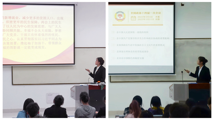宣講團成員從會議概括、會議熱點、會議內容和新時代青年四個方面解讀了“深悟全國兩會精神凝聚奮進力量”,從“治國有常,而利民為本”和“為政貴在行,民生重在實”兩個方面解讀了“全國學兩會精神弘揚時代新風”。帶領大家深刻領悟了習近平總書記系列重要講話所體現(xiàn)的鮮明人民立場,所蘊含的深厚人民情懷。也讓參會學生明白了作為新時代的青年一定要應志存高遠、忠于祖國,敢于擔當、勇于奮斗,努力做新時代具有責任意識和創(chuàng)新精神的建設者。