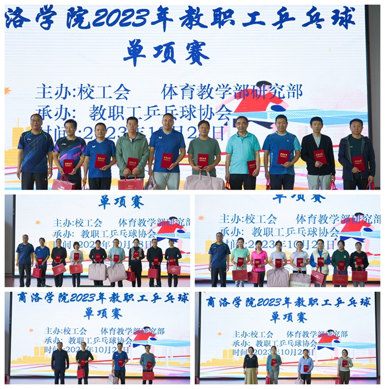 10月28日,我校2023年教職工乒乓球單項賽在丹江校區(qū)體育館順利舉行。副校長劉寶盈、郭瑾與來自學(xué)校各二級單位以及附屬小學(xué)、附屬幼兒園的80余名運(yùn)動員參加了比賽。劉寶盈為獲獎運(yùn)動員頒獎。工會、體育教學(xué)研究部負(fù)責(zé)人參加活動。