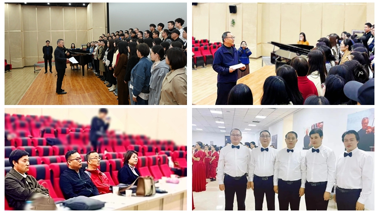 自今年2月活動啟動以來,學校認真部署安排,校美育工作辦公室暨公共藝術教育中心協(xié)同聯(lián)動美育工作領導小組各成員單位面向全校學生實施開展了“班班有合唱”、“人人都參與”的合唱展演活動,同時與校工會、藝術學院從全校范圍內選拔60余名教職工組成了“商洛學院教職工合唱團”。在全體校領導的積極參與帶動下,教職工合唱團成員們認真排練,歷經數(shù)月,終以《不忘初心》《秦嶺最美是商洛》兩首合唱展演曲目的良好展演效果入選本次省級合唱展演音樂會。