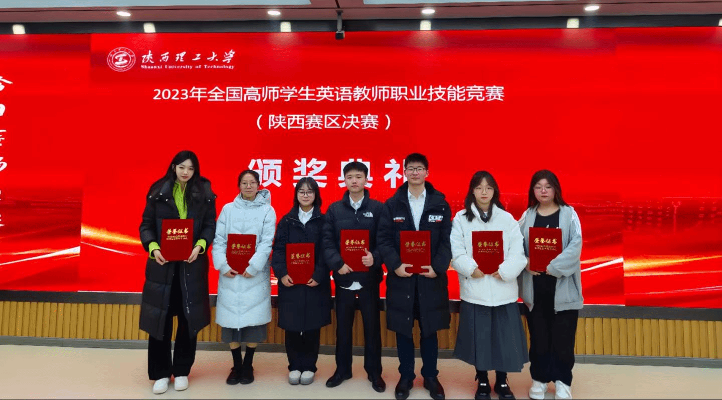 12月2日,2023年全國(guó)高師學(xué)生英語(yǔ)教師職業(yè)技能競(jìng)賽陜西賽區(qū)決賽在陜西理工大學(xué)落下帷幕。經(jīng)過(guò)激烈角逐,我校人文學(xué)院英語(yǔ)專業(yè)2名學(xué)生榮獲一等獎(jiǎng),5名學(xué)生榮獲二等獎(jiǎng)。