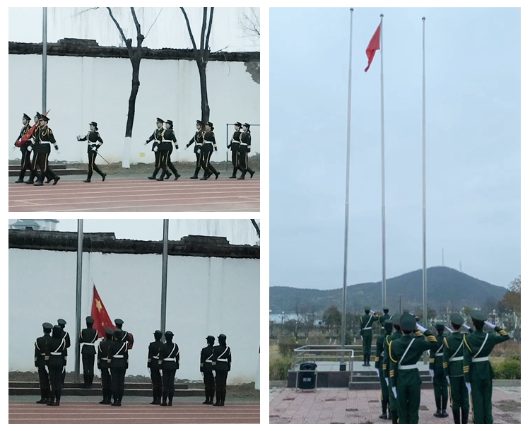 參加升旗儀式的師生列隊(duì)整齊、精神飽滿地佇立在升旗臺前。在全體師生的注目下,國旗護(hù)衛(wèi)隊(duì)邁著鏗鏘有力的步伐護(hù)送國旗至升旗臺。7點(diǎn)10分,在雄壯的國歌聲中,鮮艷的五星紅旗在兩個(gè)校區(qū)冉冉升起、迎風(fēng)飄揚(yáng)。全體師生神情肅穆,齊唱國歌,向莊嚴(yán)的國旗表達(dá)最崇高的敬意。
