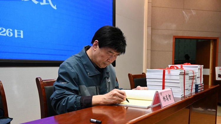 捐贈(zèng)儀式上,王新軍為楊高智頒發(fā)收藏證明,圖書館館長(zhǎng)張國(guó)春代表學(xué)校接受贈(zèng)書。