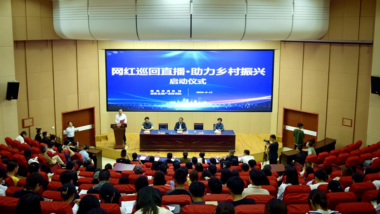 為宣傳商洛市優(yōu)秀企業(yè)和名優(yōu)特農(nóng)產(chǎn)品,推動農(nóng)產(chǎn)品線上銷售,助力鄉(xiāng)村振興,5月11日,由商洛市商務(wù)局、商洛市直播產(chǎn)業(yè)研究院聯(lián)合舉辦的商洛市“網(wǎng)紅巡回直播·助力鄉(xiāng)村振興”直播促銷活動啟動儀式在我校舉辦。副校長王新軍、市商務(wù)局局長韓東文出席活動并講話。各縣區(qū)電商服務(wù)中心負(fù)責(zé)人、“巡回直播”網(wǎng)紅團(tuán)隊(duì)和商洛直播產(chǎn)業(yè)研究院社會實(shí)踐團(tuán)隊(duì)師生200余人參加啟動儀式。
