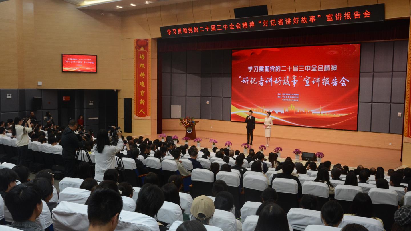 10月11日,由陜西省新聞工作者協(xié)會(huì)組建的“好記者講好故事”宣講團(tuán)在商洛中學(xué)開展“學(xué)習(xí)貫徹黨的二十屆三中全會(huì)精神‘好記者講好故事’”宣講會(huì)。商洛市委常委、宣傳部部長(zhǎng)賈永安,省委宣傳部記協(xié)秘書處處長(zhǎng)兼省新聞工作者協(xié)會(huì)秘書長(zhǎng)周凱出席會(huì)議。我校師生代表共150余人參加報(bào)告會(huì)。