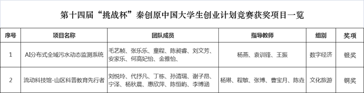 本屆競賽由共青團中央、教育部、人力資源和社會保障部、中國科協(xié)、全國學聯(lián)、陜西省人民政府聯(lián)合主辦,西安交通大學、共青團陜西省委承辦,設置主體賽及“一帶一路”國際邀請賽、“秦創(chuàng)原”創(chuàng)新挑戰(zhàn)賽2項配套交流活動。此次競賽共吸引來自2700余所高校的300多萬名學生參與,累計提交39萬余個創(chuàng)新創(chuàng)業(yè)項目。經(jīng)過各學校初賽、各省復賽,共有412所國內(nèi)高校、14所國際高校的839個項目進入全國決賽終評,最終在“秦創(chuàng)原”創(chuàng)新挑戰(zhàn)賽中,我校推薦的項目《AI分布式全域污水動態(tài)監(jiān)測系統(tǒng)》獲銀獎、《流動科技館-山區(qū)科普教育先行者》獲銅獎。