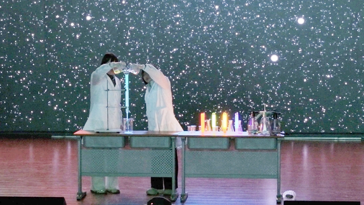 化材學(xué)院結(jié)合第二屆美育節(jié),在節(jié)目表演中穿插熒光反應(yīng)、魯米諾反應(yīng),為觀眾呈現(xiàn)了美輪美奐的視聽(tīng)盛宴。