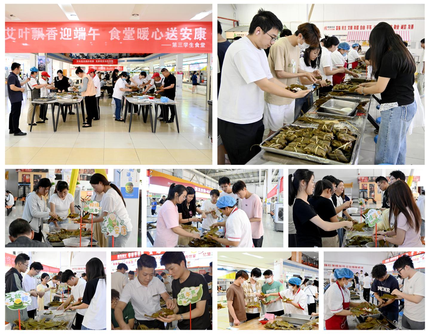 為弘揚(yáng)中華優(yōu)秀傳統(tǒng)文化,深化“三全育人”綜合改革,營造積極向上的校園文化氛圍,5月28日,我校精心策劃并組織開展了“師生攜手慶端午,三全育人貫始終”主題文化活動?;顒釉诒毙陆中^(qū)與丹江校區(qū)學(xué)生食堂同步展開,吸引師生千余人參加。