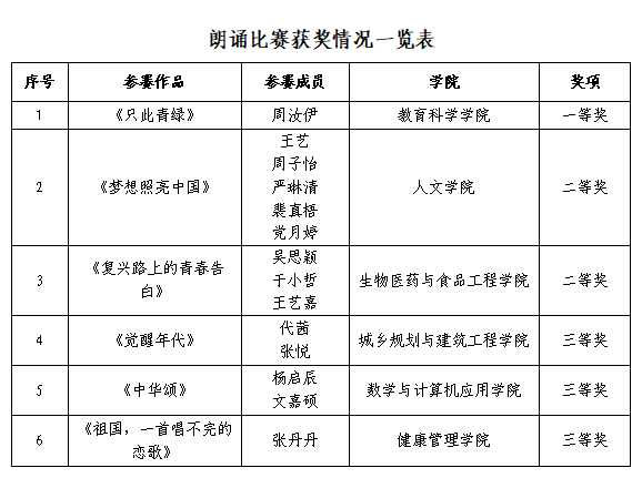 活動(dòng)中開展了新生朗誦比賽,來(lái)自各學(xué)院的2025級(jí)新生以飽滿的熱情、真摯的情感朗誦了經(jīng)典作品,贏得了現(xiàn)場(chǎng)觀眾的熱烈掌聲。經(jīng)過(guò)激烈角逐,教育科學(xué)學(xué)院選手獲一等獎(jiǎng),人文學(xué)院、生物學(xué)院選手獲二等獎(jiǎng),建工學(xué)院、數(shù)計(jì)學(xué)院、健康學(xué)院選手獲三等獎(jiǎng)。