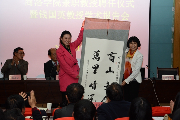 劉建林在聘任儀式上回顧了錢國英教授與我校的深厚情誼和對我校的熱情幫助,介紹了錢國英教授在高等教育教學(xué)研究方面的杰出成就。他說,商洛學(xué)院發(fā)展到今天,已經(jīng)完全融入到了本科教育的行列,正在以“穩(wěn)基、提質(zhì)、增速”,創(chuàng)新驅(qū)動(dòng)發(fā)展的新常態(tài),確保學(xué)校在中國高等教育深化改革的洪流中不落伍、出成績。在這個(gè)過程中,賈平凹先生,侯洵、劉加平院士,教育部本科教學(xué)研究中心吳博主任、錢國英校長和西北大學(xué)高勝利教授等各界人士給予了我們巨大幫助與支持。我校師生員工要懂得感恩,牢記以錢國英教授為代表的專家學(xué)者對我們的幫助,把這些幫助轉(zhuǎn)化為工作動(dòng)力,在各自崗位上為學(xué)校的創(chuàng)新發(fā)展做出自己應(yīng)有的貢獻(xiàn)。