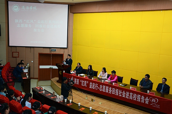 3月30日下午,“陜西紅鳳益起行——志愿服務(wù) 回報(bào)社會(huì)進(jìn)高?!眻?bào)告會(huì)在我校舉行。校黨委副書記彭虎軍,陜西紅鳳志愿者協(xié)會(huì)創(chuàng)辦人班理,商洛市婦聯(lián)副主席閆莉娜,商洛市文明辦副主任黃強(qiáng),學(xué)校青年志愿者協(xié)會(huì)成員,報(bào)告團(tuán)成員李麥青、孫洪軍以及巾幗志愿者代表,商洛市女企業(yè)家協(xié)會(huì)代表,在?!凹t鳳工程”受助生,我校輔導(dǎo)員、學(xué)生代表等450余人聆聽了報(bào)告。報(bào)告會(huì)由學(xué)工部部長石啟英主持。