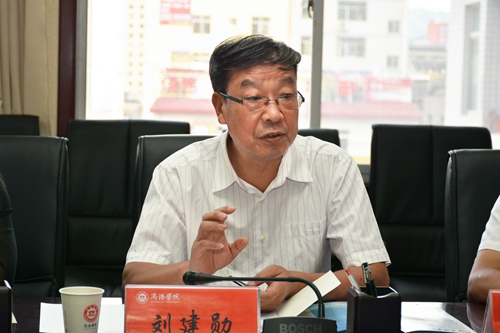 劉建林代表學(xué)校對劉建勛一行來??疾旖涣鞅硎練g迎,并向客人們介紹了我校的歷史沿革、辦學(xué)定位與辦學(xué)方向、辦學(xué)格局與學(xué)科專業(yè)、辦學(xué)特色與服務(wù)地方成就和師資隊伍建設(shè)情況。劉建林表示,我校四十年勵精圖治,升本十年風(fēng)雨兼程,近年來厚積薄發(fā),當(dāng)前,學(xué)校面臨著全面實施本科教育,構(gòu)建“穩(wěn)基提質(zhì)增速,創(chuàng)新驅(qū)動發(fā)展”新常態(tài),爭創(chuàng)一流應(yīng)用型本科院校三大任務(wù)。學(xué)校將大力實施“十大人才工程計劃”和“323211工程”,深化人事制度改革,營造“想干事、愿干事、能干事、干成事”的良好氛圍。