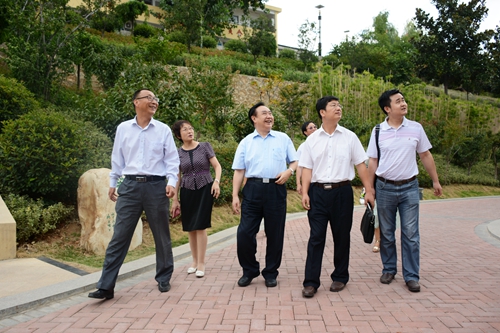 在參觀莘子苑、運(yùn)動(dòng)景觀平臺(tái)、體育場(chǎng)等處時(shí),樊代明院士對(duì)我校依山而建的山水園林校園、清新雅靜的讀書(shū)學(xué)習(xí)環(huán)境表示贊賞。