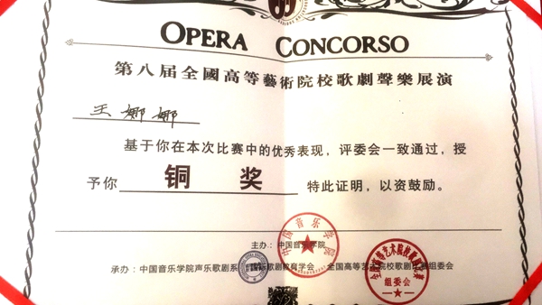 第八屆全國(guó)高等藝術(shù)院校歌劇聲樂(lè)比賽結(jié)果于近日揭曉,我校藝術(shù)學(xué)院教師王娜娜榮獲大賽銅獎(jiǎng)。