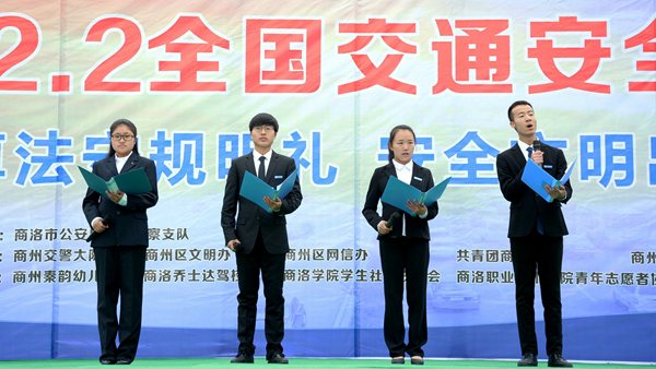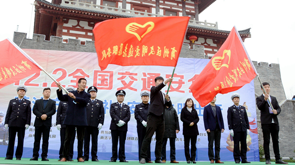為倡導廣大市民文明、有序、安全出行,營造和諧文明的交通環(huán)境。12月2日,商洛市公安局交通警察支隊組織開展了以“遵法守規(guī)明禮 安全文明出行”為主題的2017年全國交通安全日宣傳活動。我校團委積極組織近百名志愿者參加本次活動。商洛市公安局交警支隊支隊長樊永生為我校文明交通志愿服務隊授旗。