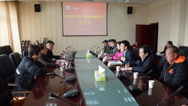 在座的教職工暢所欲言,感謝省教科文衛(wèi)體工會和校工會對大家的關懷,把黨的溫暖送到了職工的心坎上。大家有信心和勇氣戰(zhàn)勝困難,努力工作,為學校發(fā)展做出應有貢獻。
