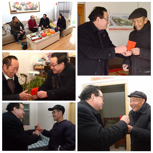 2月9日,在春節(jié)即將來臨之際,副校長魏書堂在院長辦公室、離退休職工工作處負責人的陪同下先后來到張和銀、崔振喜、費興順、任書年、王安言、王忠孝、張孝春等退休職工家中,為他們送去了慰問金和學校黨政的祝福與關(guān)懷。