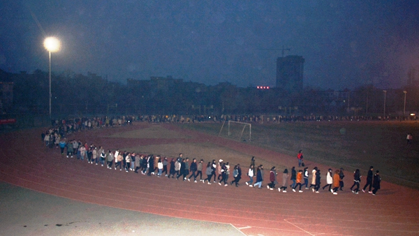 “三早一晚”優(yōu)秀傳統(tǒng)不能忘,商院驕子伴著燈光跑早操。
