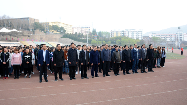 3月26日,晨曦微露、旭日東升,在學校體育場國旗臺,我校舉行了隆重的升國旗儀式。校領(lǐng)導龍治剛、范新會、王思懷、魏書堂、彭虎軍、劉寶盈、劉勇,黨委委員王新軍、李超、楊存典、張向東,各職能部門、馬克思主義學院、繼續(xù)教育學院、體育教學部全體教職工,全??萍壱陨细刹浚R克思主義學院、經(jīng)管學院學生1300余人參加升旗儀式。