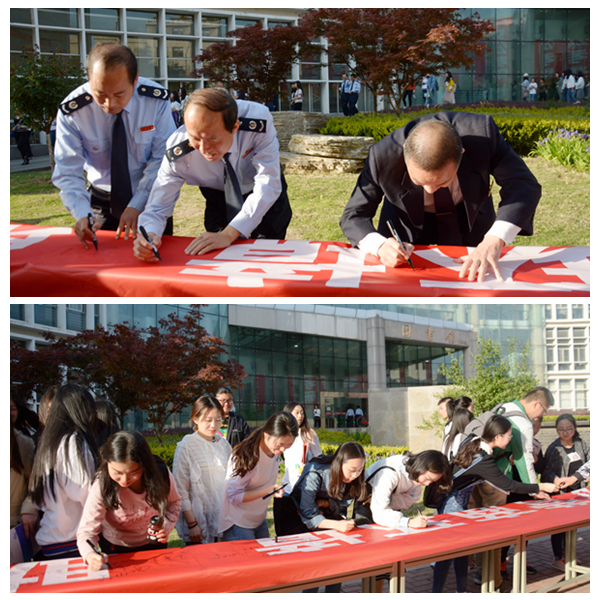 聽(tīng)完講座后,師生們紛紛在“優(yōu)化稅收營(yíng)商環(huán)境 助力經(jīng)濟(jì)高質(zhì)量發(fā)展”宣傳橫幅上簽名,表達(dá)自己爭(zhēng)做守法納稅人的決心。