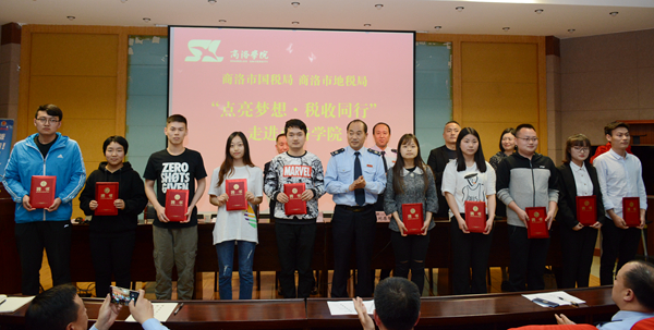 在第27個(gè)全國(guó)稅收宣傳月到來(lái)之際,為了宣傳普及稅法知識(shí),增強(qiáng)師生稅法意識(shí),4月19日,商洛市國(guó)稅局、商洛市地稅局聯(lián)合開(kāi)展的“點(diǎn)亮夢(mèng)想?稅收同行”稅法宣傳活動(dòng)走進(jìn)我校。紀(jì)委書(shū)記王思懷,市國(guó)稅局副局長(zhǎng)劉存智,市地稅局副局長(zhǎng)馮書(shū)云出席活動(dòng)。我校宣傳部、財(cái)務(wù)處、經(jīng)管學(xué)院負(fù)責(zé)人及相關(guān)人員,國(guó)稅、地稅干部,經(jīng)管學(xué)院師生代表150余人參加活動(dòng)。