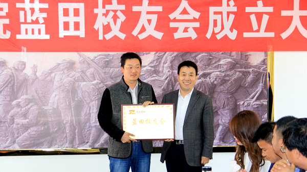 彭虎軍代表校友總會為藍田校友會授牌授旗并頒發(fā)聘書,校友總會辦公室主任郭英勇宣讀了藍田校友會批復(fù)和聘任文件,藍田校友會秘書長邵舉樂宣讀了《藍田校友會章程(試行)》,大會由副會長賀娜娜主持。