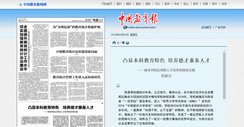 校長范新會在《中國教育報》2018年8月3日第3版發(fā)表署名文章《凸顯本科教育特色 培養(yǎng)德才兼?zhèn)淙瞬拧搪鍖W(xué)院應(yīng)用型人才培養(yǎng)的探索實踐》,全文如下: