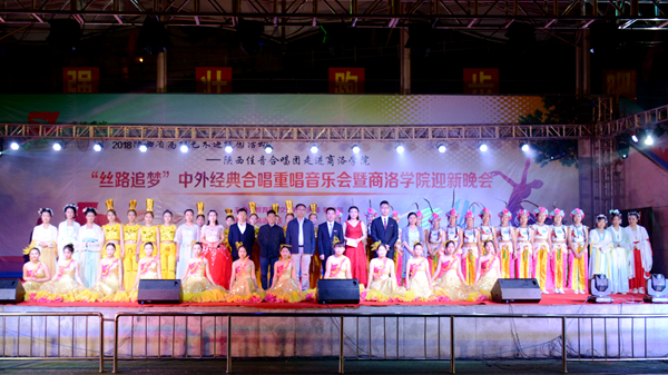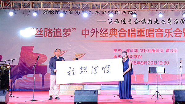 9月20日晚,由教育部、文化和旅游部、財政部主辦的2018年“高雅藝術(shù)進校園”活動——陜西佳音合唱團“絲路追夢”中外經(jīng)典合唱重唱專場音樂會暨我校迎新晚會在體育場隆重舉辦。黨委書記龍治剛,校長范新會,黨委副書記彭虎軍,陜西佳音合唱團團長、指揮西安電子科技大學周偉教授,合唱團藝術(shù)總監(jiān)西安交通大學馬西平教授,合唱團導聆西安音樂學院藝術(shù)處處長劉寶玲出席活動。