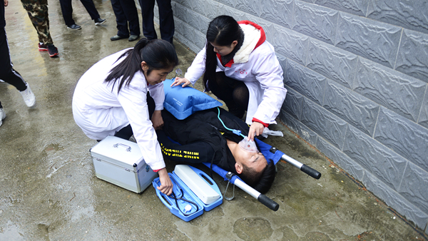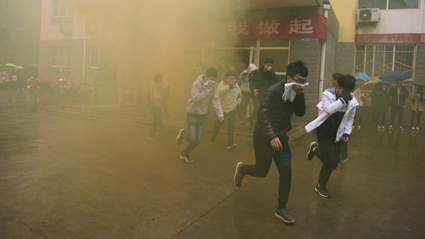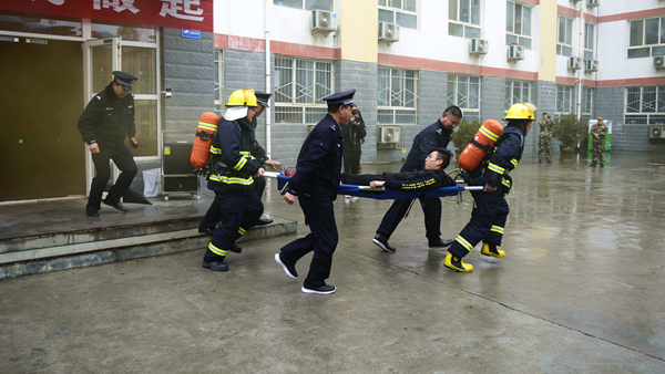 ?演練活動(dòng)以我校一棟男生公寓樓起火為假設(shè)情景,共分為“逃生演練”“火場(chǎng)救援”和“滅火演示”三個(gè)部分。隨著指揮員一聲令下,模擬活動(dòng)開(kāi)始,“火災(zāi)現(xiàn)場(chǎng)”頓時(shí)濃煙滾滾,火險(xiǎn)警報(bào)響起,4名同學(xué)從“火災(zāi)現(xiàn)場(chǎng)”逃離出來(lái)并大聲呼救。我校立刻啟動(dòng)應(yīng)急預(yù)案,輔導(dǎo)員、公寓管理員、保衛(wèi)人員迅速趕到現(xiàn)場(chǎng),引導(dǎo)學(xué)生有序疏散,師生開(kāi)展“逃生演練”進(jìn)行自救,并在第一時(shí)間撥打119火警電話(huà)。消防員接到報(bào)警后立即出動(dòng),駕駛消防車(chē)火速趕來(lái)。同學(xué)們聽(tīng)從引導(dǎo),動(dòng)作迅速,用濕毛巾捂住口鼻,彎腰靠右側(cè)從“失火”的樓道中有序撤離到指定安全區(qū)域。隨后,消防人員還模擬演練了“火場(chǎng)搜救被困學(xué)生”,醫(yī)護(hù)人員對(duì)“被搜救學(xué)生”模擬進(jìn)行了“治療檢查”,消防支隊(duì)啟動(dòng)消防車(chē)在火災(zāi)現(xiàn)場(chǎng)進(jìn)行“滅火演示”。至此,在各相關(guān)部門(mén)的密切合作和全體同學(xué)的共同配合下,本次火災(zāi)應(yīng)急疏散與救援演練活動(dòng)圓滿(mǎn)完成。