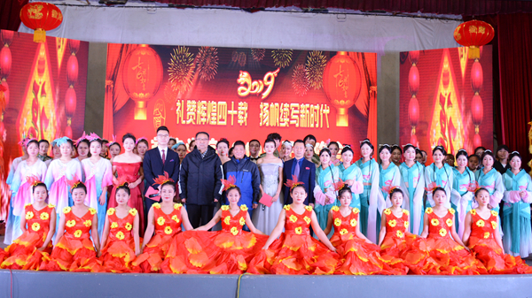 晚會結(jié)束后,校領(lǐng)導與全體演職人員合影留念。