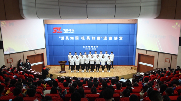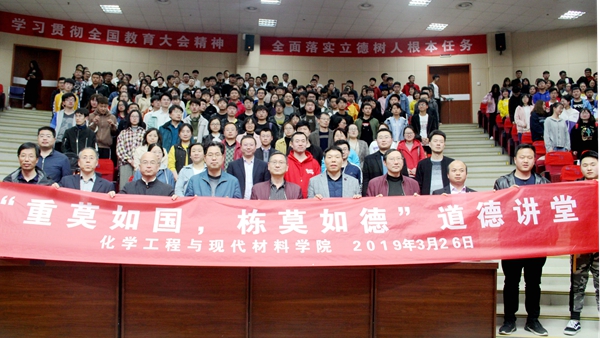 為進(jìn)一步培育和踐行社會主義核心價值觀,大力學(xué)習(xí)宣傳道德模范和身邊好人的感人事跡,增強(qiáng)大學(xué)生思想道德教育實效性,3月26日,化材學(xué)院在圖書館二樓報告廳舉辦以“重莫如國 棟莫如德”為主題的道德講堂?;膶W(xué)院師生400余人參加了活動。