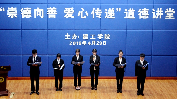 為進(jìn)一步營造道德建設(shè)的濃厚氛圍,推進(jìn)“知行合一”的道德實踐,4月29日晚,建工學(xué)院舉辦了以“崇德向善 愛心傳遞”為主題的道德講堂。建工學(xué)院師生400余人參加了活動。