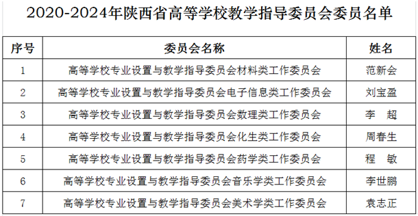 近日,陜西省教育廳公布了2020-2024年陜西省高等學(xué)校教學(xué)指導(dǎo)委員會(huì)委員名單,我校7名教師成功入選。