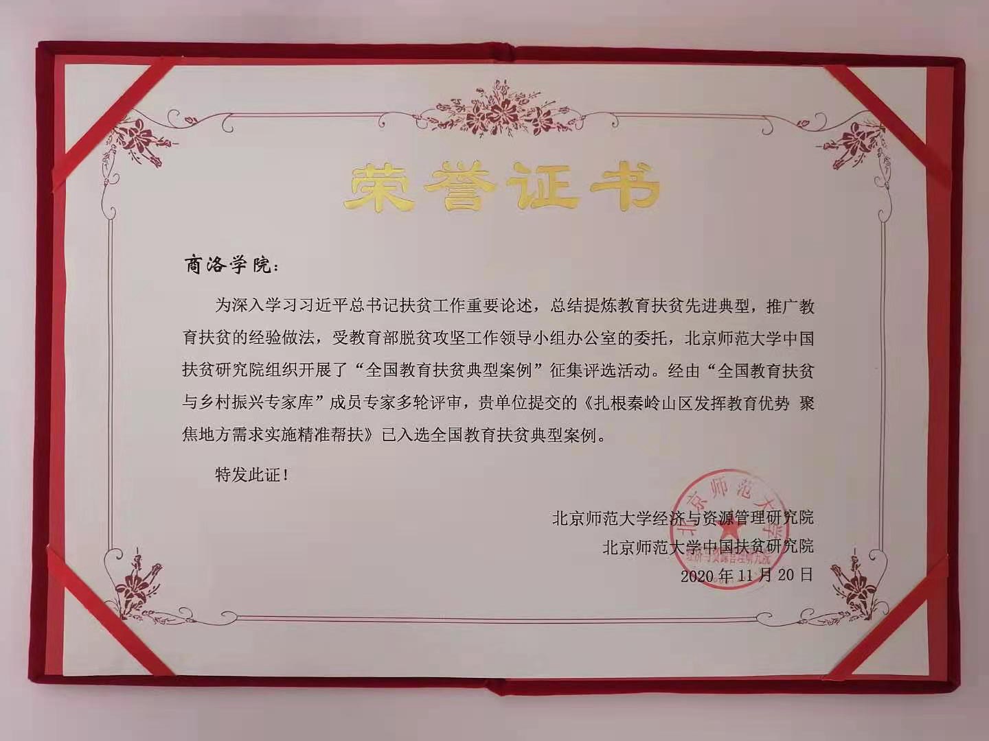 受教育部脫貧攻堅(jiān)領(lǐng)導(dǎo)小組辦公室委托,北京師范大學(xué)中國(guó)教育扶貧研究院于2020年組織開(kāi)展了“全國(guó)教育扶貧典型案例”征集評(píng)選活動(dòng)。此次評(píng)選活動(dòng)共有全國(guó)千余所高校、中小學(xué)及地方教育行政部門(mén)參加,最終選出全國(guó)教育扶貧典型案例235項(xiàng)。我?!半p百工程”辦公室提交的《扎根秦嶺山區(qū)發(fā)揮教育優(yōu)勢(shì) 聚焦地方需求實(shí)施精準(zhǔn)幫扶》入選全國(guó)教育扶貧典型案例,并于近期正式獲頒證書(shū)。我校也因此成為陜西省獲此殊榮的2所地方本科院校之一。