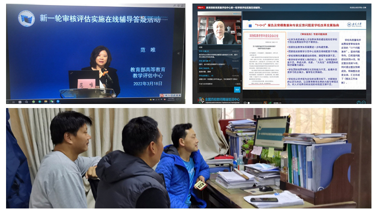 3月18日上午,教育部高等教育教學評估中心舉辦了“新一輪審核評估實施在線輔導答疑活動”,副校長劉寶盈,教務處、督導與評估中心、各二級院(部)相關人員參加了線上培訓。