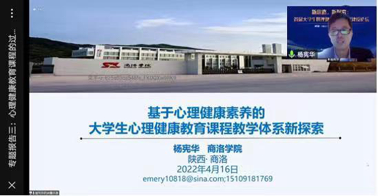 4月16日至17日,中國心理衛(wèi)生協(xié)會大學生心理咨詢專委會聯(lián)合國家社科基金重大項目“國民心理衛(wèi)生素養(yǎng)及其提升機制與對策”項目組舉辦全國“新思路,新探索:首屆大學生心理健康教育課程建設論壇” 線上學術論壇,我校健康學院楊憲華副教授受邀在“專題報告”環(huán)節(jié)作交流發(fā)言。