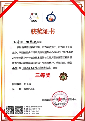 由共青團陜西省委、陜西省教育廳、陜西省少工委主辦的2021-2022學年全國中小學信息技術(shù)創(chuàng)新與實踐(NOC)大賽陜西賽區(qū)分賽結(jié)果于近日揭曉。經(jīng)濟管理學院教師趙子越指導的商洛市小學團隊獲得陜西賽區(qū)人工智能類Robo Genius智造未來賽項小學組省級三等獎。這是在我校公眾科學素質(zhì)與創(chuàng)新發(fā)展研究中心指導下,該校學生首次取得省級人工智能類賽事獎項。